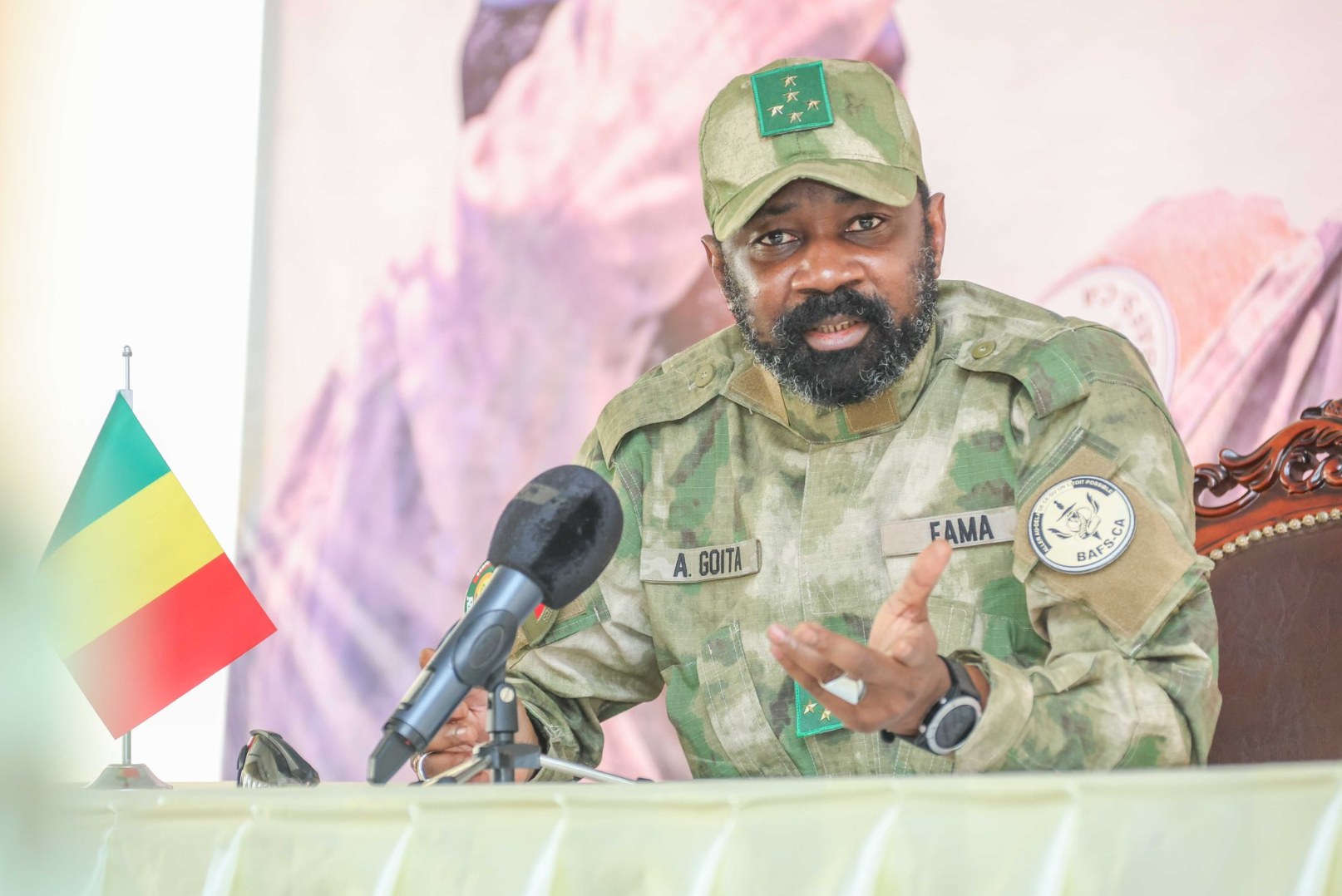 Em vez de recuar, Goïta manteve-se firme, insistindo na retirada completa das forças francesas do país o mais rápido possível. Para preencher essa lacuna, ele visitou Moscou e convidou mercenários do Grupo Wagner para ajudar as Forças Armadas do Mali a combater os islâmicos. No final de 2021, as tropas do Grupo Wagner começaram a chegar.
