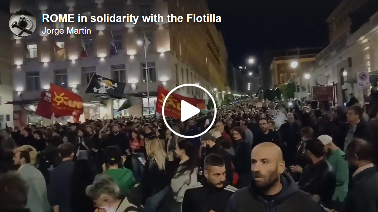 O movimento de massas na Itália explodiu em torno da questão de Gaza, mas reflete uma raiva mais profunda contra os ataques do governo de direita contra a classe trabalhadora, a deterioração das condições de trabalho, a erosão da educação e da saúde, etc. A greve geral na Grécia foi convocada ontem devido à contra reforma proposta pelo governo à legislação trabalhista (para permitir, entre outras coisas, uma jornada de trabalho de 13 horas), as bandeiras da Palestina foram hasteadas com destaque em todas as manifestações. O mesmo acontece hoje na França, onde foi convocado mais um dia massivo de greve contra o governo e suas medidas de austeridade.